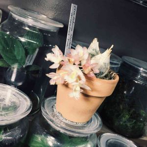 カタセタム属 フィンブリアツム ×サッカツム チャートルセ 雌雄異花の蘭で、こちらは雄花 ジンジャーに似た香りがします。 吸血鬼の牙のような突起に触れると勢いよく花粉塊が飛び出して虫の頭に貼り付きます。カタセタム属の面白い生態が好きで何種類も挑戦しましたが、15年たって生き残ったのはこの株だけ。 やはり難しいですね 今年は3輪 きれいに咲いてくれました(〃^ー^〃)