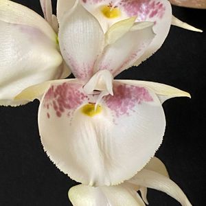 SVO7345 Catasetum Diana’s Dots (Ctsm. Orchidglade ‘Davie Rachel’s’ AM/AOS x Ctsm. tigrinum SVO)開花🌸🌸🌸 少しおめかしして📷✨✨✨ 小ぶりなクリーム色の花弁に小豆色のドット🫘 香りはないですが、とても上品な品種です🌸☺️ カタセタムくんさんからのお譲り、ようやく咲きました🙌㊗️