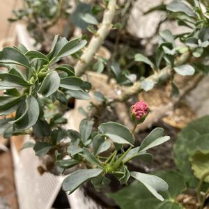 モンソニア(サルコカウロン)パターソニーのくしゃくしゃの蕾 休眠が中途半端だったからか、一つだけ…… ちゃんと咲けますように。
