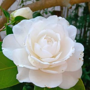 椿 八重 昨日2輪目が咲きました。 おはようございますm(_ _)m ☁☀マークです。