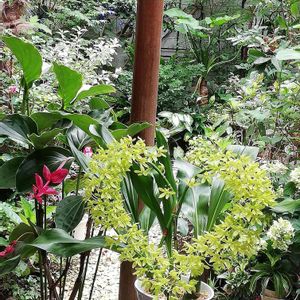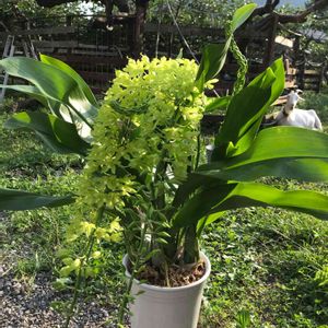 毎月8日は鉢の日🏷に参加させていただきます🌼 グラマトフィラム ムルチフロルム (Grammatophyllum multiflorum (= Grammatophyllum scriptum (Lindley) Blume var citrinum))は,ラン科グラマトフィルム属に属し,東南アジア,フィリピン~パプアニューギニアに分布し,着生して生育する大型の原種ランということです🌼 大きくて華やかな蘭ですね〜🌼 @高知県立牧野植物園にて