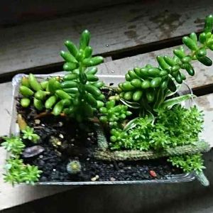 おばあちゃん家に行った時に貰った子たちをケーキが入ってたフタを利用して寄せ植えしてみましたー✨ 念願の虹の玉ちゃんが元気にそだってくれて。。。(。>﹏<。)✨嬉しい! あと、サボテンくんとか、その他モロモロ(^^) 可愛くて無駄に何度もベランダに出てしまう✨