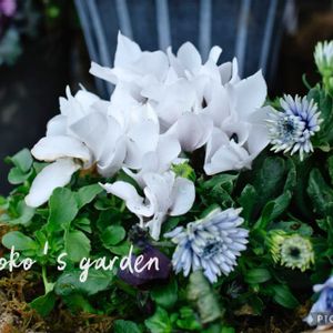 おはようございます☀ 今日もお天気がいいです✨✨ オステオスペルマム3D 昨日サービスでもらったミニシクラメン 裏庭に放置してあった汚いバスケットに寄せ植えしました。 あまりにも汚いのでまた植え替えかな。