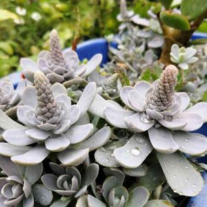 子宝の名札で売られていたけど,見た目からして子宝錦? 3鉢に分けて別々の場所に置いてあるけど,その名の通り子株がいっぱい出てきた。いつかは株分けした方がいいのだろうけど,しばらくはこのままで育ててみるつもり。