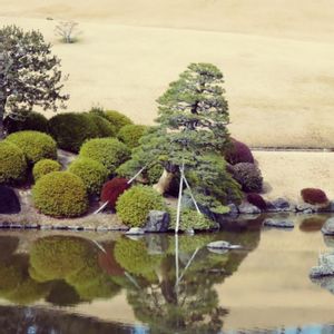 万博記念公園 日本庭園の池 池に映る空は、 実際より青く 風が無くて、逆さ木々も美しい