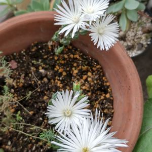 5/10に頂いた、マツバギク 上手く根付いたようです 繊細な白い花びら 心配なので他の鉢にも分けて植えたけど みんな元気❗️ よしよし( *´・ω)/(;д; )😅 一つの鉢にまとめるかな トリトニアも根付き大丈夫、嬉しい🥰🥰