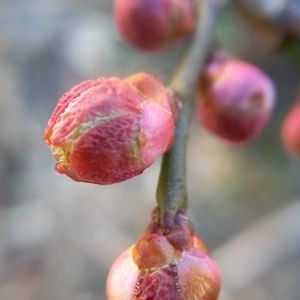 今日のお花 ウメです 鉢植えを、枯れるのが心配なので地面に植えてみましたよ‼️ 開花までもう少しかかりますね! 紅白の咲き分けがどのくらい出るか楽しみです!