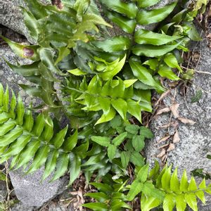 こんにちは😊 🏷毎月4日はシダの日に参加します。 名前がわからないのですが、鳥羽の牡蠣を食べに行った時、駐車場にありました。 ②は、真っ赤に紅葉したベンケイソウ。まだお花が咲き続けています。 ③我が家のドウダンツツジです。あまり綺麗ではありません😅 ④ヤブランの実⋆⸜💚⸝⋆🤍💜かわいいです。 ⑤今日見た通り道のハゼと青空💕