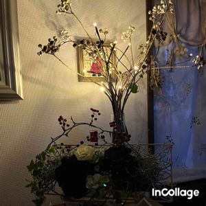 こんばんは😊 先日ハゼの枝を頂いたので、セリアのライト付き枝と合わせて、クリスマスバージョンに❣️ 🏷クリスマス月間に参加します🎄.*
