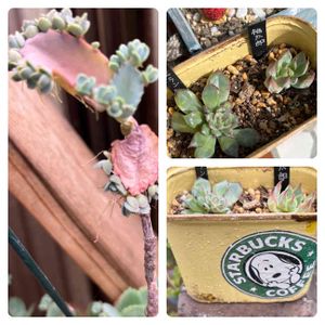 おはようございます☀️ 🏷棒の日 🏷ワンワン祭りに参加します。 放ったらかし過ぎた子宝草にお子ちゃまいっぱい🤣母は強し❣️ さくら餅子さんにいただいたスヌーピーリメ缶の桃太郎、モランさんがちっちゃくなったけど、生きています😅縁が可愛いく色付いてきました。