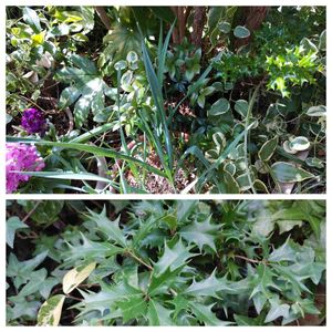 今日は、節分💛 2 節分の夜、ヒイラギの枝に焼いた鰯の頭を挿し、門戸に飾ると悪鬼を払うという”柊鰯”は、一度もしたことがありません(ご近所さんで見かけたこともない…笑) では、うちのヒイラギ(柊)さんを紹介します♪♪ 柊は生垣や庭木として広く利用され、魔除けとして鬼門の方向に植えたり縁起木として玄関脇に植えられるとか。 昔、寄せ植え用に買ったものをばらして植えたもので 1株は偶然、玄関脇(写真上)💛💛 なかなか大きくなれないでひょこりはんのように育っています (実際は、トゲトゲを嫌って隅に追いやった🙇) もう1株は、玄関ヘンス側で窮屈そうに小さく育っています(写真下)😿 雌雄異株。花も実も、一度も見たことはないです😿 写真は2020/2/1と2/3のものをコラージュ💛