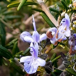 冬の花壇 薄紫色の綺麗なお花 ローズマリー グリーンの葉と薄紫色の花 シソ科 マンネンロウ属
