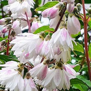 空木の花がひらきました ピンク色の丸いつぼみ 八重の花弁の美しさ そして真っ白なシベでした 🌱サラサウツギ アジサイ科 ウツギ属