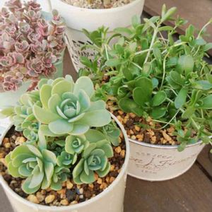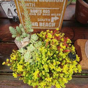 レンゲ系とミセバヤ系の一部 左下、ピーチパーフェクトはGSで知って、今年の冬にメルカリでポチりました🎶 ほんの7つくらいだったのに、瞬く間に増えて(๑•ㅂ•)و✧ 真ん中ユーパリ(夕張)ミセバヤも鉢増ししたら随分と増えました😉 右上、千島小岩蓮華も鉢いっぱい、鉢増ししたほうがいいかな〜 昨年は、ここから雨に当てすぎたのと猛暑とで、腐ったり小さくなったりで秋にも程々にしか復活しませんでした💦 ただ、根っこさえ残っていれば、冬を越して休眠明けからは更にパワーアップ⤴️⤴️👍