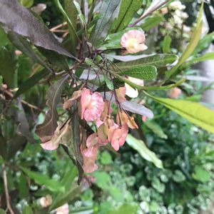 6月のホップブッシュ(ドドナエア)です🌿 薄いグリーンの花が咲いています。枝ごとドライフラワーにも出来ますね😊1m 以下で植え、4年で3m 超えました❗️