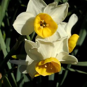 ニホンスイセン(日本水仙) 隣のコと何を話してるのかな? ヒガンバナ科 花被片は白色、副花冠は黄色で、花期は11月~3月 結実せず、種子ができない
