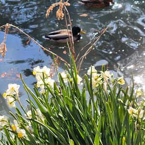 マガモは落ち葉に咲く🍂スイセンの香り!