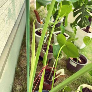市内が冠水した先日の豪雨の日 雨、半端ない😱💦といいながらも会社帰りにいつものスーパーへ。 切り花や小さな鉢植えにまじって 何故?なデカさのコ キレ〜🤩と吸い寄せられ 何故?な値段1200円✨ ずぶ濡れになって抱えて車に。 びちゃびちゃになって 頭をぽんぽんされながら家にお連れ致しました。 即植替えのお陰かげか 足を伸ばせてギューンと成長しとります。☺️