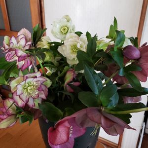 🌸クリスマスローズ🌸 来年の花の為に泣く泣くバッサリ✂😭 家にあった花瓶にぶっ込んだだけ〜(センスの欠片も有りません😅)