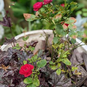 おはようございます☁ 🏷真っ赤な火曜日 ミニ薔薇コルダーナ 二番花達 この厚さで葉っぱも焼けてしまってます こんどは台風接近の為 大雨が なので今日カットしようかな…🤔💭 🏷ウクライナ🇺🇦に平和🕊🕊を