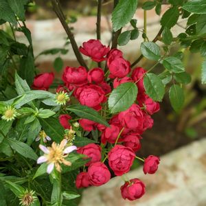 おはようございます☁ 🏷真っ赤な火曜日 っていうことで またまた コロコロ薔薇さん 隣りは 都忘れ 自前の3段花壇の2段目 🏷ウクライナ🇺🇦に平和🕊🕊を