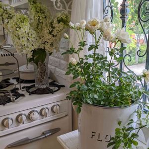 おはよう☀ございます 今朝のキッチンから ダフネ アイスバーグ 今年お迎えした シュネーバルツァー 昨日 アイスバーグの 1番花殆どカットしたら あらまあ 40Lのゴミ袋にほぼ3つに さて 今日は 何が咲いているかな? 🏷ウクライナ🇺🇦に平和🕊🕊を