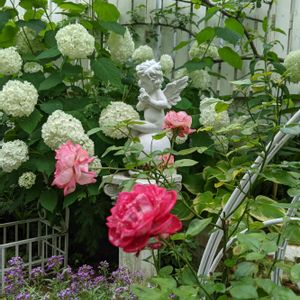 おはようございます☁🌞 お庭のアナベルさんが 満開に 手前のバラさんは ミニ薔薇 ジジ スーパーアリッサムも 結構モリモリさんに 🏷ウクライナ🇺🇦に平和🕊🕊を