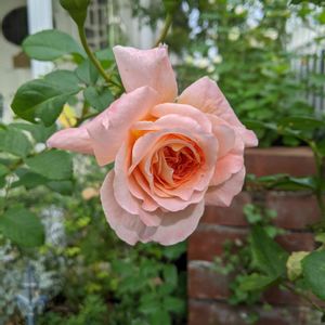 おはようございます☁ 今日は 🏷水曜ローズショー ミニ薔薇『グリーンアイス』 だいぶ大きくなって2年生になりました 薔薇『しずく』の間で グラウンドローズとして いい感じ 煉瓦と薔薇って 会いますねぇ~ 🏷ウクライナ🇺🇦に平和🕊𓂃 𓈒𓏸◌を