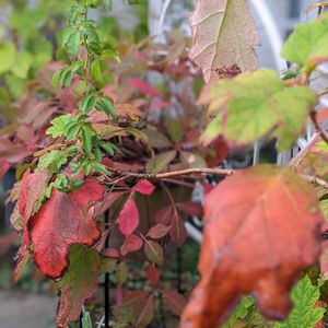 おはようございます(*^^*) 我が家の紅葉もなかなか イケてる カシワバアジサイ ヘンリーツタ が色づいて アナベルはまだちょっと みどりは クライミングローズの エバンジェリン とラベンダー 昨日 雨降り前のpicから 🏷ウクライナ🇺🇦に平和🕊𓂃 𓈒𓏸◌を