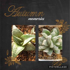 ⬅️ハオルチア 吹雪 夏に凹んでしまった葉が少しずつ戻って 来ました😸 ➡️ベヌスタ 花芽の後から子株か出て来て、双頭にな ってしまいました。 どこから切ったら良いのか迷ってて、 そのままになってます😅