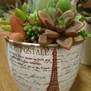100均の切り株風な鉢も “ひとてま込めて”寄せ植えすると なんだか趣があっていい感じになった 気がします(*'∀'*)ゞエヘヘ この100均切り株シリーズ、 色々出てるので集めたくなりますね❤︎ 今日、誕生日の父に縁起が良さそうな 名前の“万宝”を入れて作った ミニ寄せ植えで〜〜す❤︎❤︎❤︎