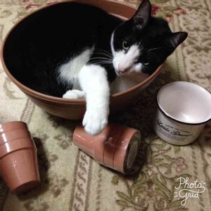 DAISOの8㎝素焼き鉢が意外と良い❣️ 3個108円なのも嬉しいね😊 多肉を纏めて植えようと 大きくて丸い鉢を買ってきたんだけど、 🐱入るわな〜、だって ちょうど良いんだもん(^^;;