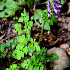 ムラサキケマン (紫華鬘) 全体が柔らかで、やや角張った茎に複雑に別れた葉が互生します。 茎の上部に筒状唇形花を多数咲かせます。花後は結実してタネを散らすと、夏には枯れて姿を消します。 アルカロイドを含む有毒植物で、傷を付けると少し悪臭がします。 名前のケマンとは、仏堂の欄間の飾りの事です。 別名:ヤブケマン 疑問:葉っぱ🌿の先端が普通尖っているはずなのだが、これ☝️は丸みを帯びている。 何故だろうか?🤔 ひょっとしたら、あの人なら解るかも・・・?🙏🙏🙏