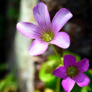 ムラサキカタバミ (紫傍食) ー今日のお花ー 南アメリカ原産の帰化植物です。観賞用に輸入されたものが野生化しました。 花は結実せずに、地中の鱗茎によって増えていきます。類似のイモカタバミより花数が少なく、花色がやや薄いです。葯は白色で花粉が出ません。