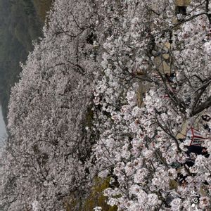 ウスズミザクラ (淡墨桜) 樹種は「エドヒガン(江戸彼岸)」です。 ウスズミザクラとは、岐阜県本巣市にある一本桜の名称です。樹齢1500年以上の老木で、日本五大桜・三大巨桜の一つです。天然記念物に指定されています。 この老木の保護に尽力をされた作家の <宇野 千代> さんの生家がここ岩国にあり、その関係でウスズミザクラの苗木が吉香公園に植えられました。 今では随分と大きくなり、毎年立派な花を咲かせています。