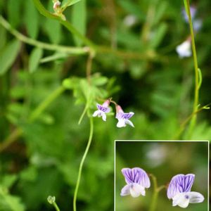 カスマグサ (カス間草) カラスノエンドウとスズメノエンドウとの自然交雑種です。スズメノエンドウと一緒に生えている事が多いですね。💕 カラスの㋕とスズメの㋜の間の草と言う意味で、この名前が付けられました。 因みに、野草の名前で動物の名が付いたものは、人の役に立たないと言いますが・・・🤔