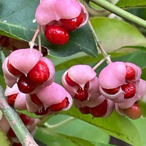 昨日の 今日のお花 マユミ 昨日、今年実の中の赤い種まだ見れてなくて、明日にでも行きましょうとコメントを😊 お天気も良く行ってきました♪🚶♀️ 市川万葉植物園 丁度ピッタシのタイミング お外に出たいよーと言わんばかりに割れた実の中から真っ赤な種が飛び出していました。🔴😍💕 🏷真っ赤な火曜日 🏷あっ火曜日 に参加させてくださいね
