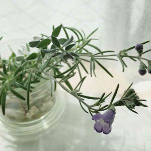 庭から数週間前に摘んできたミントブッシュシルバーリーフの花が咲きました。 ローズマリーは触るといい香りがします。 とても長持ちの庭の切り花たち。
