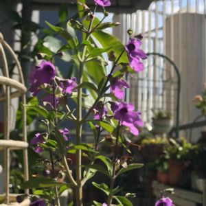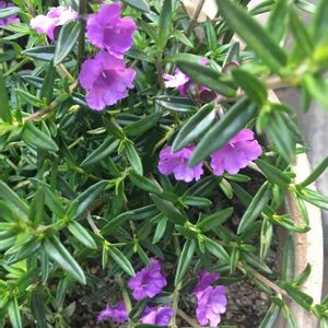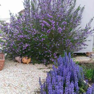 育て始めて18年目になります。✌️ 霜に弱かったり夏の根焼けで枯れたりしましたが毎年花後直ぐに挿し木をして絶やさずに維持してます🌿 葉がミントの香りがするんですよ! 今1m位の丈になってます 鉢植えにしてるんですが根が地に着いてしまって動かせない状態😅 花はベルフラワーとよく似てる可愛らしい紫色で名はミントブッシュ❣️🎶