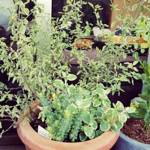 ラナンキュラスが枯れてアメリカンブルーだけになっちゃって寂しかったので、リーフ系の寄せ植えを作ってみました😊 鉢もコンクリートをこねて作ったお手製です。 花柄摘みが大変なのでハーブ系の木を中心に寄せ植えしてみたけどどんな感じで育ってくれるかな。