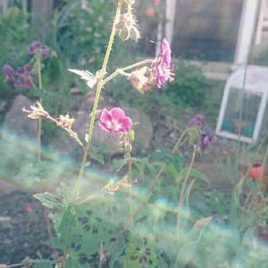 朝から出かけていて庭を眺められなかった今日。 18時過ぎにギリギリ撮影。 黒花フウロが咲いた〜