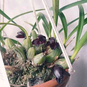 この時期は変わった蘭が入荷します。 フレッドクラーケアラ アフターダーク Fdk.After Dark‘SVO Black Pearl’ フレッドクラーケアラ属は 属間交配で生まれた品種です。 自宅用に買ってしまった。 真っ黒の花が咲くので開花が楽しみ。