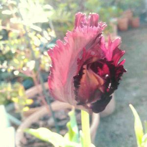 黒いチューリップだけど明るいお日様の下だと赤っぽく見える💜
