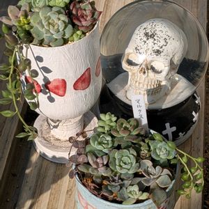 こんばんは🌠 🏷どたま祭り🏷ハロウィン 🏷るる かまぼこ板で繋がる輪 🏷金曜日の蕾たち🏷オケツの日 🏷トリの日🏷一日遅れてめんごめんご 参加しまーす✨ ①多肉寄せ植え❣️チビッコ苗で寄せてみたよ~🍀(^^ゞ ハロウィン🎃で使い損ねた骸骨のどたまで🏷どたま祭り ②ここからは昨日投稿予定だったの〜💦😅 お店のハロウィン🎃オブジェ ③ミセバヤの蕾❣️ブタ🐷さんのオチリと同じ🩷に膨らんで来たよ〜✨(*^^*) ④海辺で黄昏るトリさんみっけ👀🔍