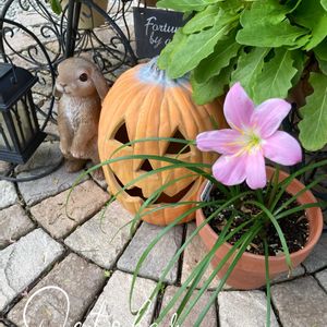 おはようございます(*´∀`)♪💕 10月になりましたね☺️♬ ゼフィランサスさん🌸 2度目の開花をしてくれました🙌♬ ハロウィンのカボチャ出してみました🎃 白いお花も咲いてます🤍 🏷️ドタマ祭り 🏷️白い水曜日♡ 🏷️ハロウィン月間 いろいろ 参加させてくださいね〜〜🎶٩(๑❛ᴗ❛๑)۶💖 今月もよろしくお願い致します🙇♀️ 皆さまステキな一日を🐰🤗🍀