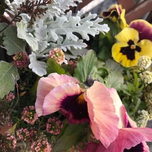 今日のお花🌼シロタエギク パンジーと寄せ植えにしたハンギングも長く楽しめています(^^)