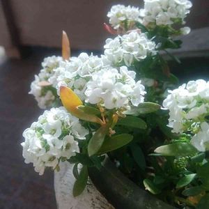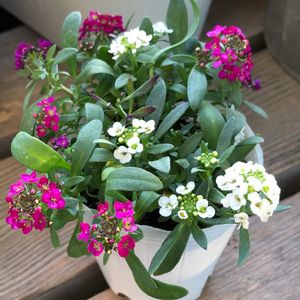 今日のお花💐 プリムラの間に植えた アリッサムさんが 元気モリモリ🤗 可愛い脇役さんね🥰
