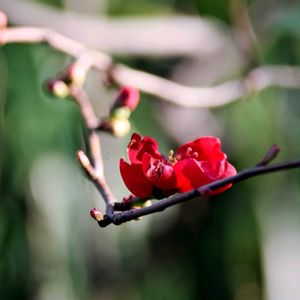 《 春の訪れ 》 植物園を散策していると、緩い斜面に小さな赤い花が2輪咲いている見つけました 紛れもなく木瓜(ボケ)の花、枝いっぱいに花がつくのもまもなくのこと 蕾も花も愛らしい。やがて真っ白い花も咲き始めることでしょう 我が家の庭にも欲しい木だと感じています ☺️ 和名の木瓜は、果実が瓜(うり)に似ていることから、木になる瓜ということで「木瓜(もけ)」も呼ばれ、その後「ぼけ」に転化したそうです。 ボケの花言葉 平凡 ボケが低木で小さな 庭に向いている、と いうことで 早熟 先駆者