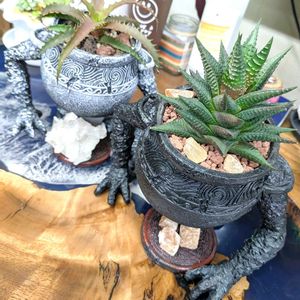 モンスター鉢😁 黒にはハオのリミフォリアちゃん✨ グレーにはオルソのブリットルスターちゃん✨ それぞれうちで育った子のチビちゃんが独り立ち⤴️⤴️ こんな鉢を買っちゃったもんだから、どんな子を植えようか悩んだ結果、垂れ葉と立ち葉の子達をin🎶 どっちの子も濃い緑や明るい緑になったり季節で赤みが出るから、度々ヘアカラーが変わって楽しそう🤭
