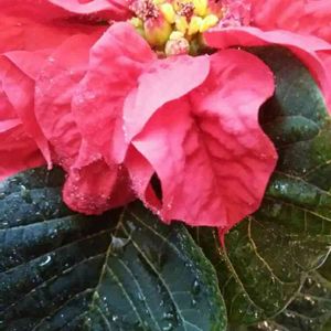 窓辺に赤いポインセチアの灯り、目印にサンタ🎅さん来てくれるかな?
